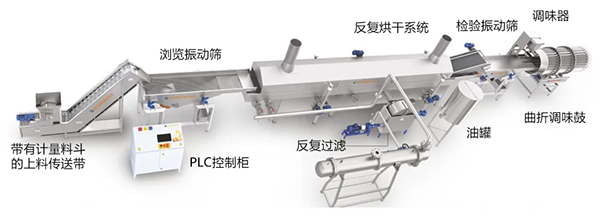 调味冷却:采用自动调味机,采用翻滚法或喷雾法加入调料,调味均匀以满足不同消费者的口味。